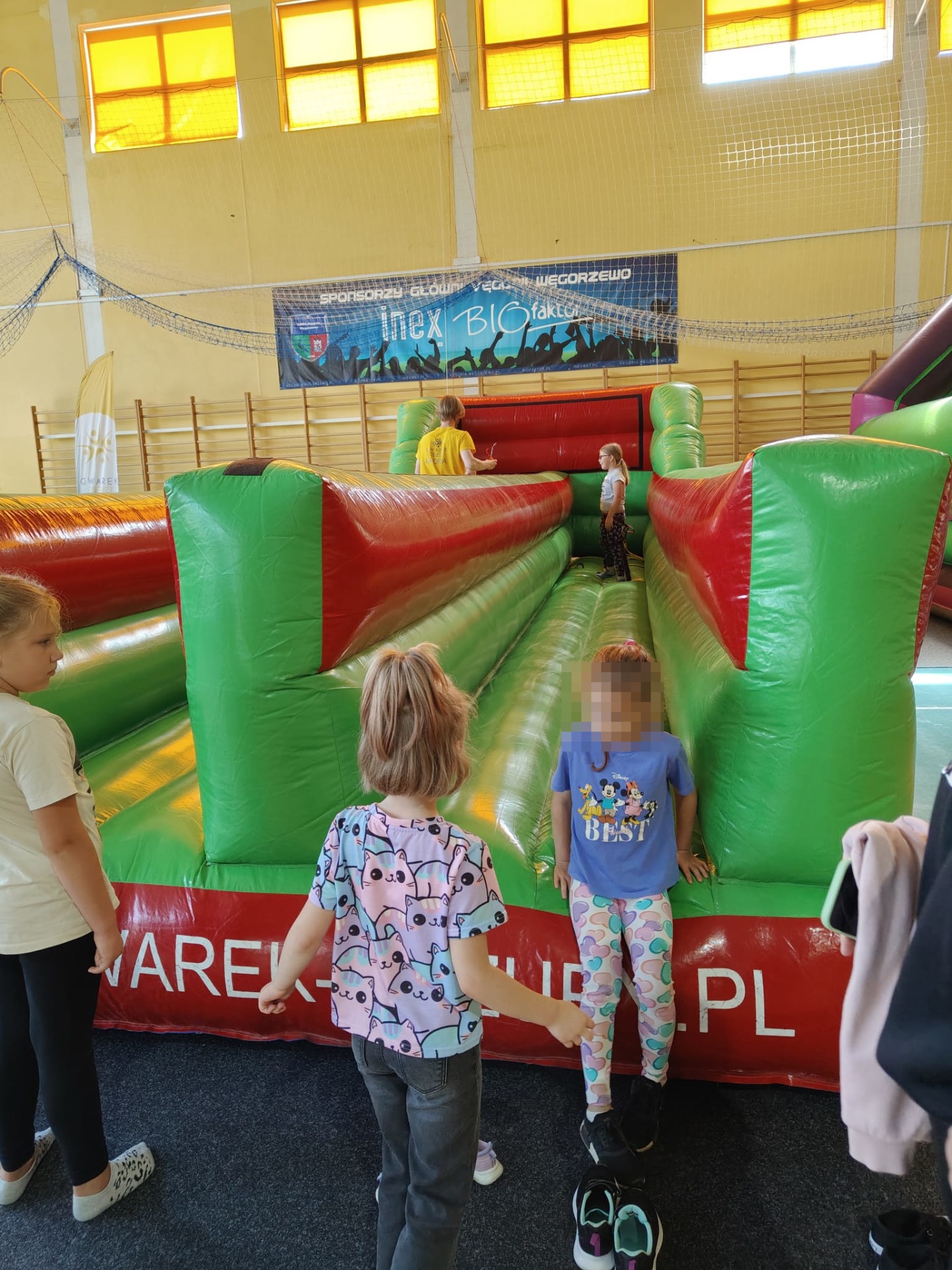 Dla uczestników przygotowano wiele atrakcji, które sprawiły, że każdy – bez względu na wiek – mógł znaleźć coś dla siebie. Najmłodsi z radością korzystali z kolorowych dmuchańców, a także angażowali się w gry i zabawy integracyjne, rozwijające współpracę i budujące więzi rówieśnicze. Na wszystkich gości czekał również smaczny poczęstunek, przygotowany z ogromną starannością przez Spółdzielnię Socjalną „Fajna i Twoja”, która zadbała o to, by atmosfera spotkania była jeszcze bardziej przyjazna i gościnna.