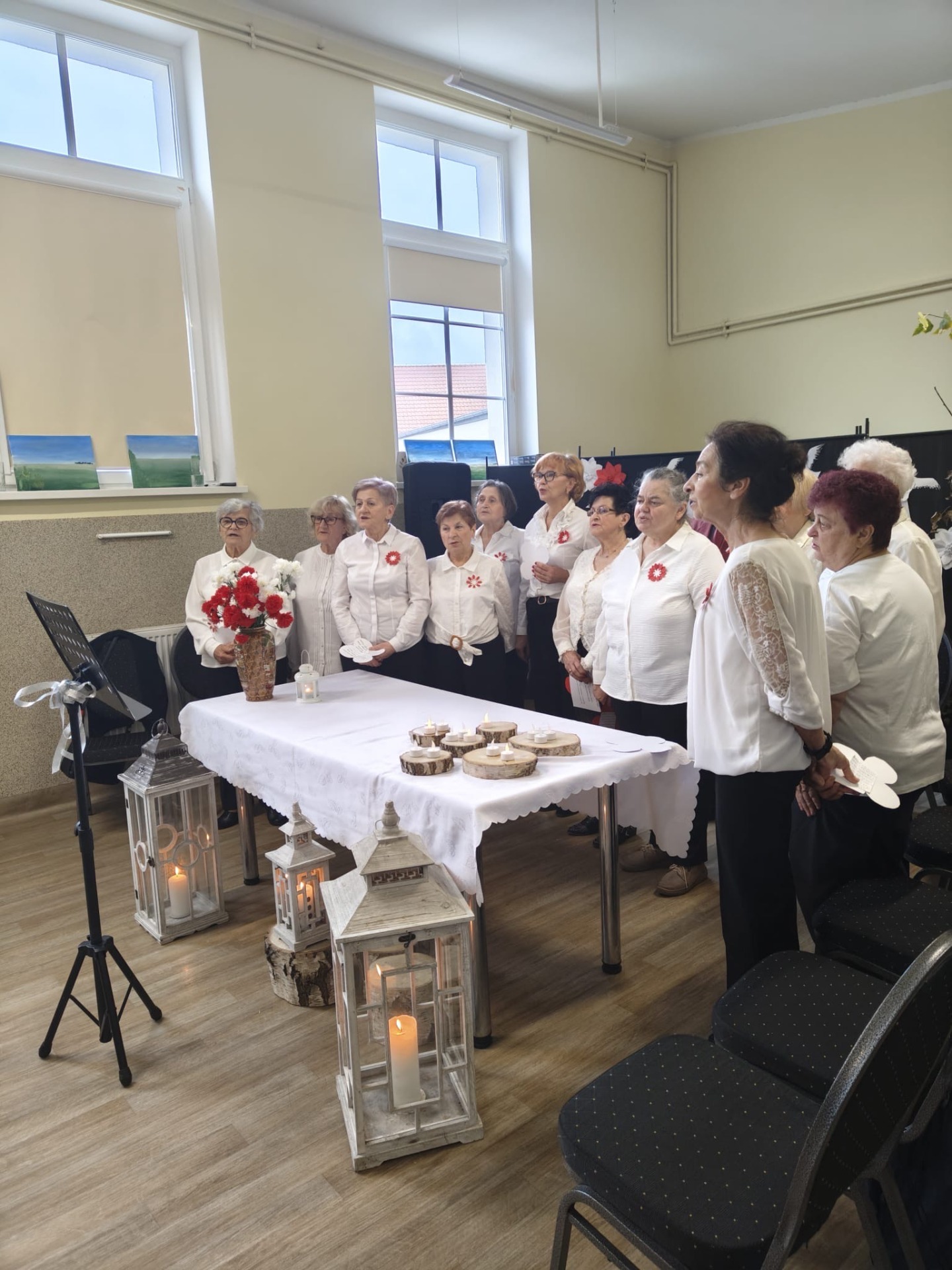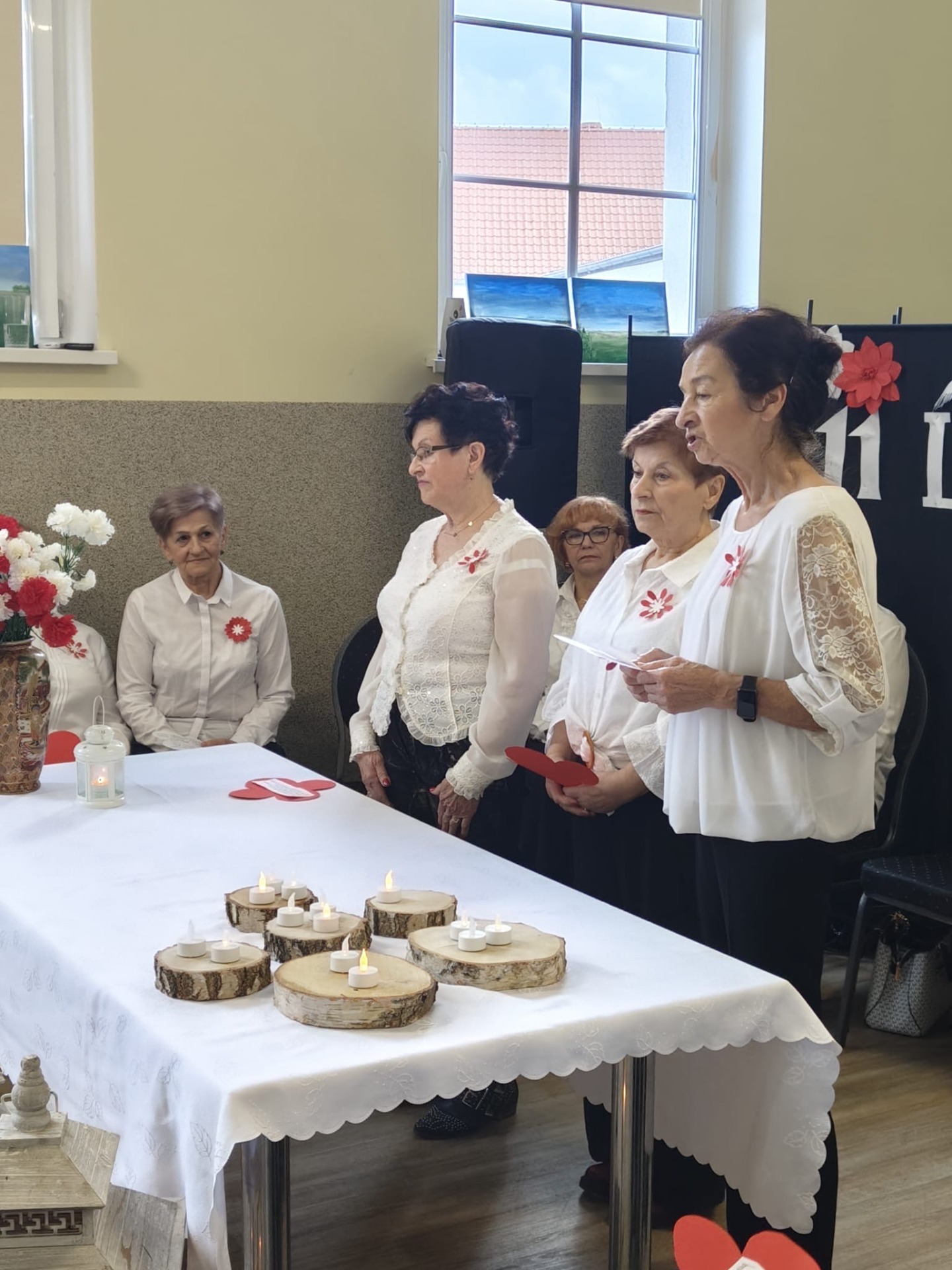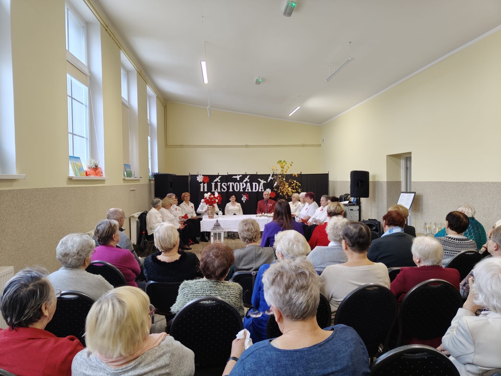 Seniorki z Klubu Seniora także wykonały piękne i pełne wzruszeń pieśni patriotyczne, m.in. „Szara piechota” oraz „Legiony”. Pod opieką Pani Krystyny Kalich przygotowały również krótką, ale bardzo ciekawą prezentację przybliżającą historię Święta Niepodległości i jego znaczenie dla kolejnych pokoleń Polaków.