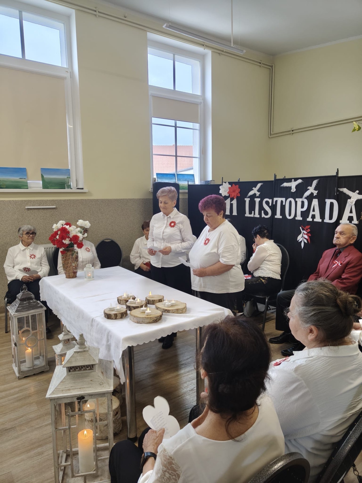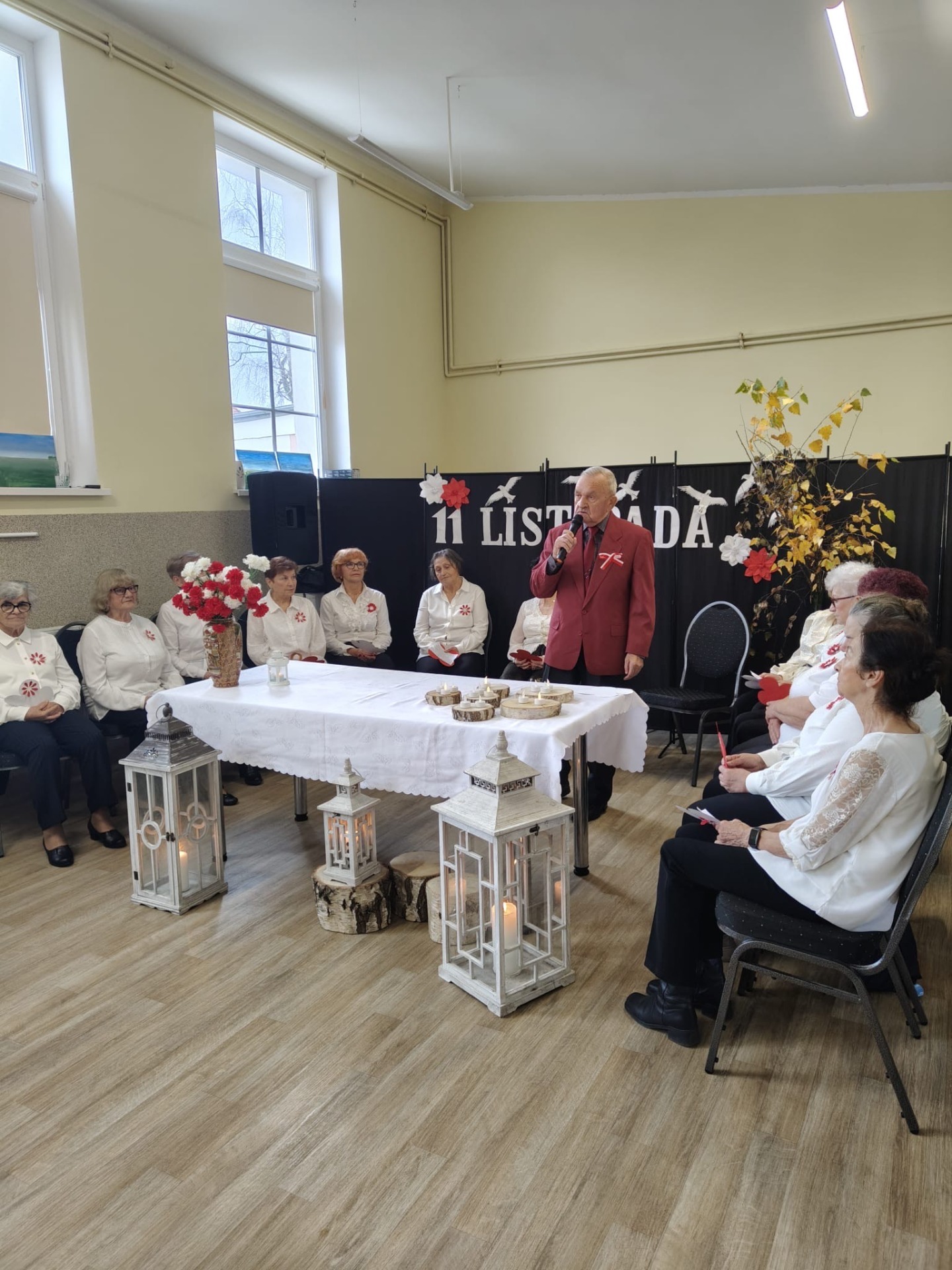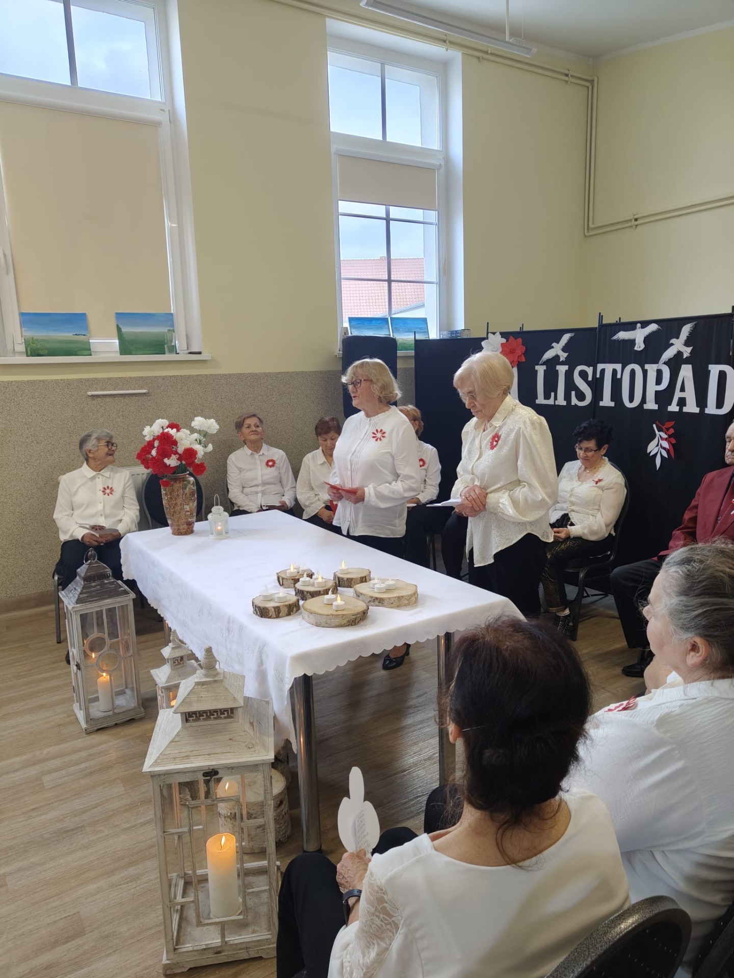 W dniu 19 listopada, z okazji Narodowego Święta Niepodległości, w Klubie Seniora odbyło się wyjątkowe i pełne ciepła spotkanie. Swoją obecnością zaszczyciły nas Dyrektor Miejsko-Gminnego Ośrodka Pomocy Społecznej Pani Dorota Giczewska oraz Kierownik Klubu, Pani Barbara Tryczyńska.