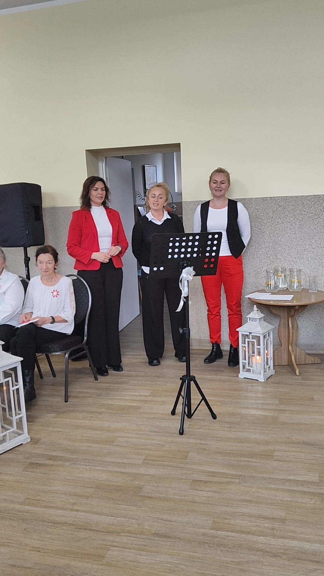 Po części artystycznej uczestnicy zostali zaproszeni na skromny słodki poczęstunek. W miłej, spokojnej atmosferze toczyły się rozmowy, wspominano minione lata oraz dzielono się wrażeniami z uroczystości. Seniorzy mieli też okazję do bezpośrednich rozmów z Panią Dyrektor, co spotkało się z dużym zainteresowaniem i życzliwością. Był to serdeczny czas spędzony wspólnie, podkreślający znaczenie tego wyjątkowego święta.